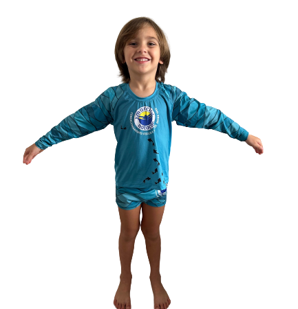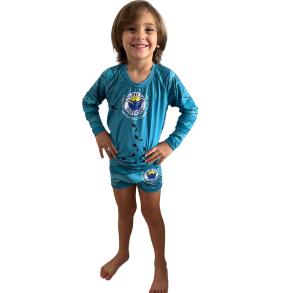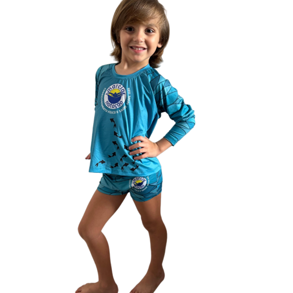 O material da blusa é escolhido especialmente por sua capacidade de bloquear os raios UVA, ajudando a prevenir danos cutâneos causados pela exposição prolongada ao sol durante as atividades aquáticas. Além disso, a blusa é leve e respirável, proporcionando conforto durante todo o tempo de uso.